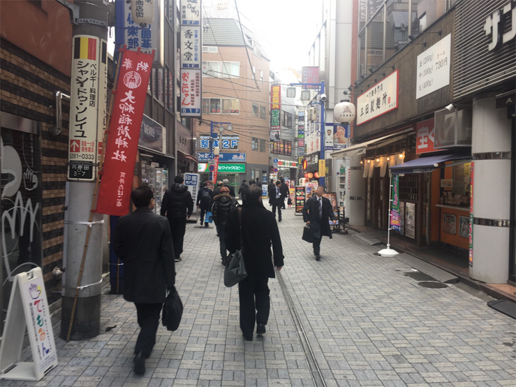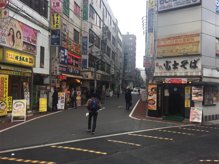 北口を出たら「富士そば」の左手の道を進んで下さい。