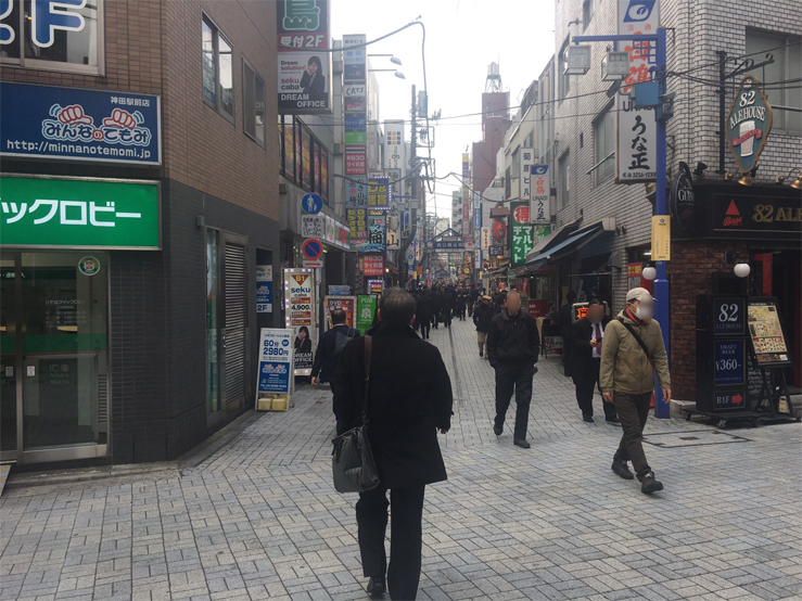この看板が指す建物が「神田Kホール」のあるビルでございます。