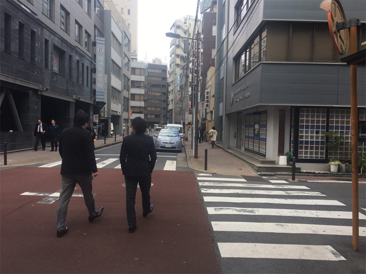 そうすると「神田外語学校」を左手に見る道に出ます。